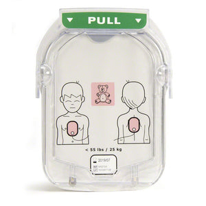 The Philips OnSite Infant/Child Cartridge Electrode Pads are designed for children under 8 years old or weighing less than 55 lbs. When connected, the Philips HeartStart OnSite AED automatically lowers shock energy and adjusts voice instructions. These pediatric SMART Pads provide safe, age-appropriate treatment in an emergency.